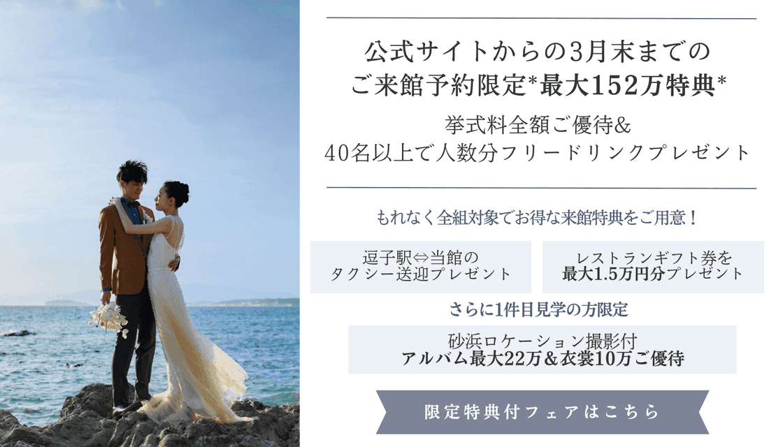 ここから予約が1番お得♪満席間近【年1*最大152万特典◇ギフト券最大1.5万&豪華試食】初めてでも安心◎海まで2秒*オーシャンビュー&口コミ高評価*厳選地元食材の絶品試食♪ミシュラン4つ星ホテルでの1日をご提案《見学日は逗子駅往復送迎有》