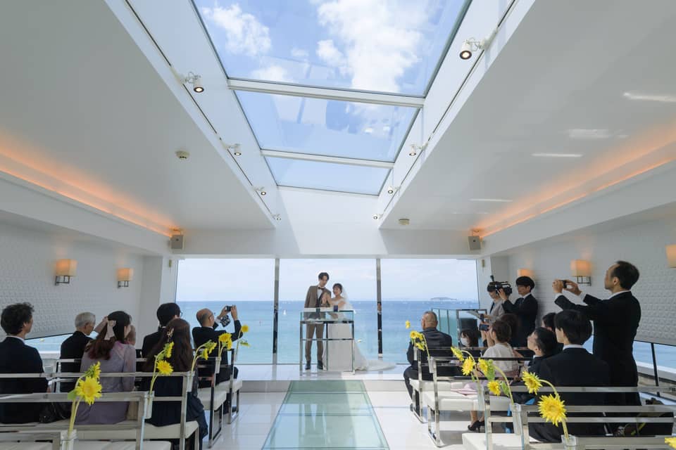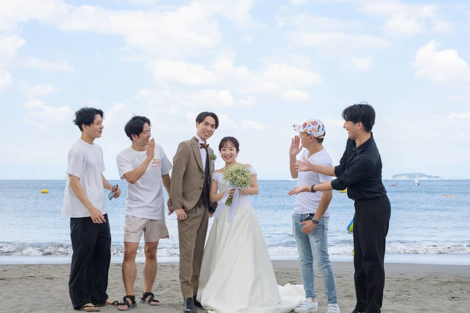 青い海と空を背景に、砂浜やチャペルでの写真撮影を。