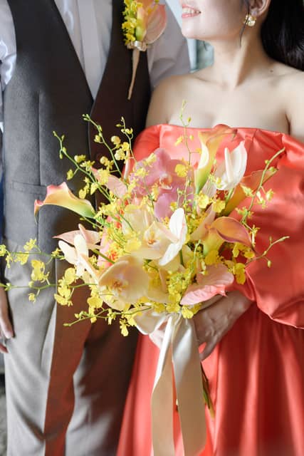 ゲスト参加型の演出では、人前式でのドライフラワーセレモニー。